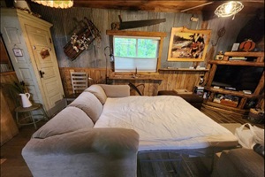 Large back yard with fire pit, picnic table and hammock. Fire wood is free. Grilling area with gas grill or weber charcoal grill available. Bar/shed with a tailgate bar perfect for setting food and drinks on. Garage and pump house are locked. We request guests to stay out of old buildings on west side of property. Quiet river, best for small boats, kayaks or canoes. (Lots of rocks) Ceiling fans are usable by chain in bedroom and living room. Bring your own beach towels if you plan on swimming. Washer and dryer and clothesline available for use. Wearing water shoes advisable because of rocky riverbed. In winter months, slippers suggested for cold hardwood floors. Be aware, there are working train tracks nearby; they do use their horns/whistles! (Trains can be loud and there is no set schedule to follow).